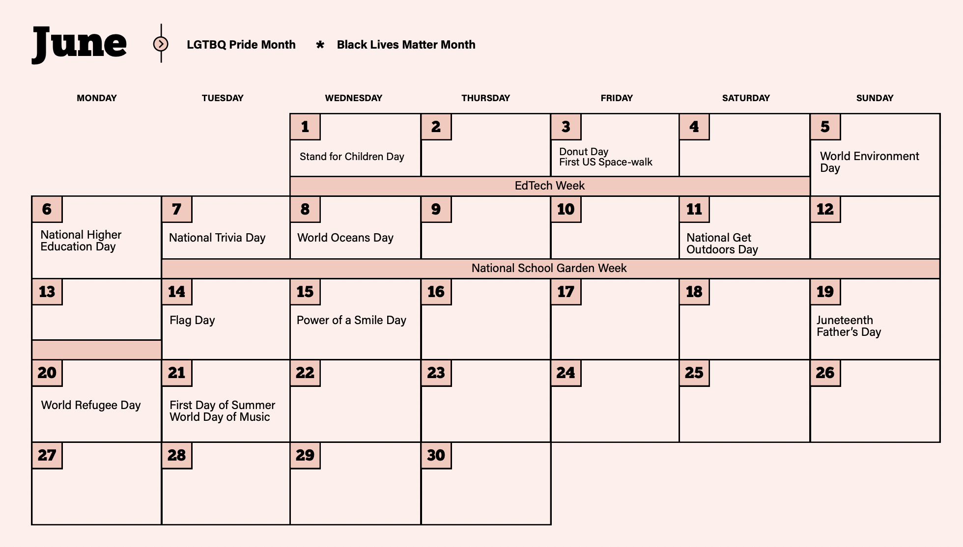 June marks the end of the school year and the start of summer in the U.S. K-12 education system. It is the wind-down of graduation season and closing out the school year. For EdTech brands, June can be the beginning of a slow, dormant season for educators. Once school lets out for summer, administrators can begin assessing their needs and researching tools for the following school year. Teachers typically work to complete professional development (the biggest EdTech conference, ISTE, occurs at the end of June), may work on lesson planning, and can also be found researching products and services that might help them. This is a great time to focus on building your organic social media presence and adding value to your audience’s lives.