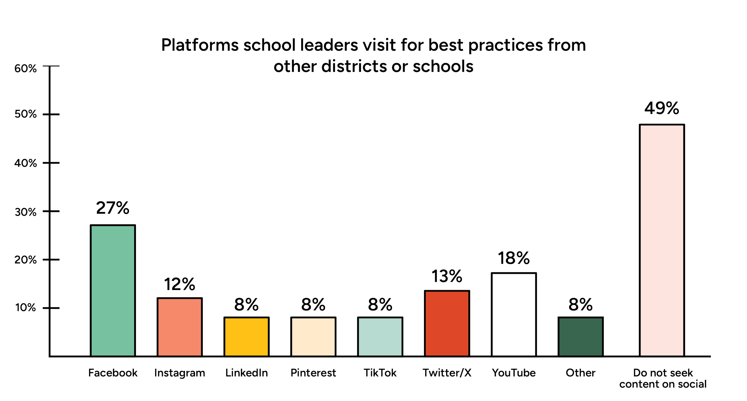 The magic of social media is that if done well, you can help your audience do and learn things that don't 100% map to the original intent of why someone is spending time on social media initially. So, while this data reveals some helpful insights about school leaders’ behavior on social media, always take into account WHY someone spends time on a certain social media channel and then come up with a strategy that aligns with that intent. Then, sprinkle in helpful things that you can surface up to them as you use social media to build a relationship with them over time.