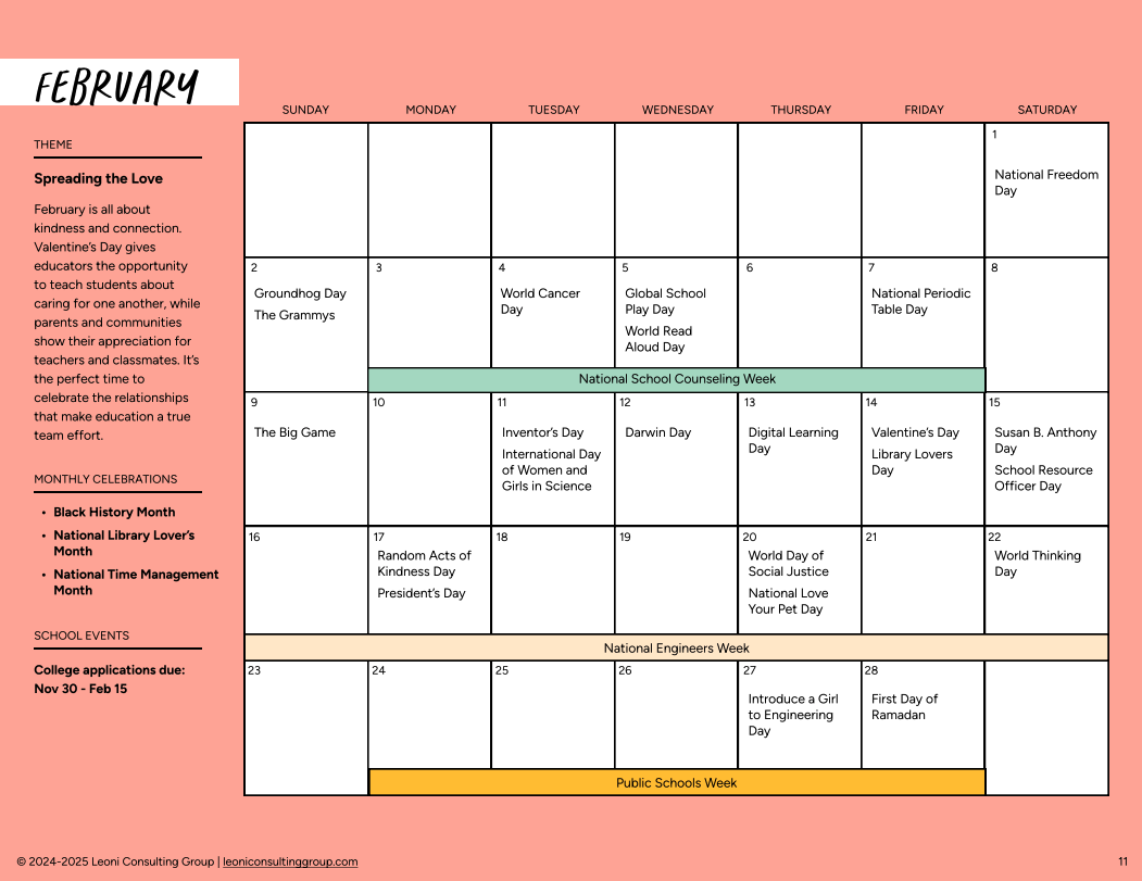 Make February memorable with curated events, holidays, and strategies to connect with educators and administrators. Want the full list? Download the free planner today.