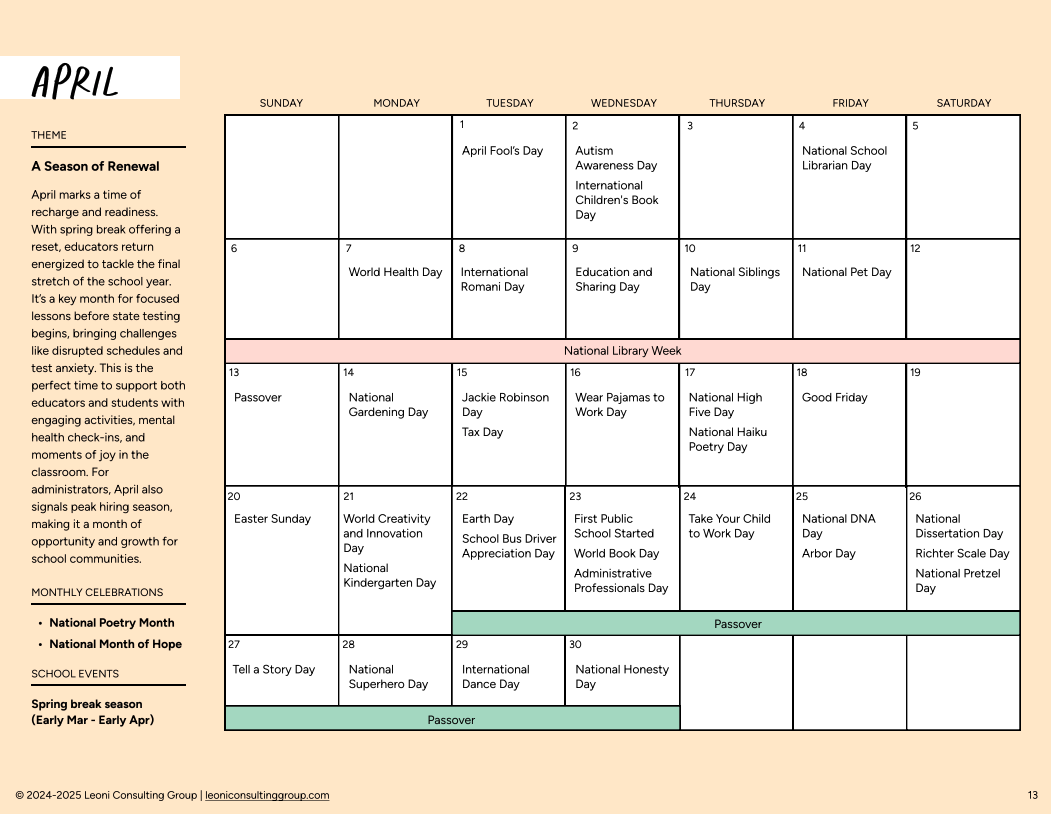 Below are some of the most important dates EdTech marketers should consider throughout the second quarter. We’ve also brainstormed timely content ideas that align with the needs and challenges of teachers and school and district administrators.