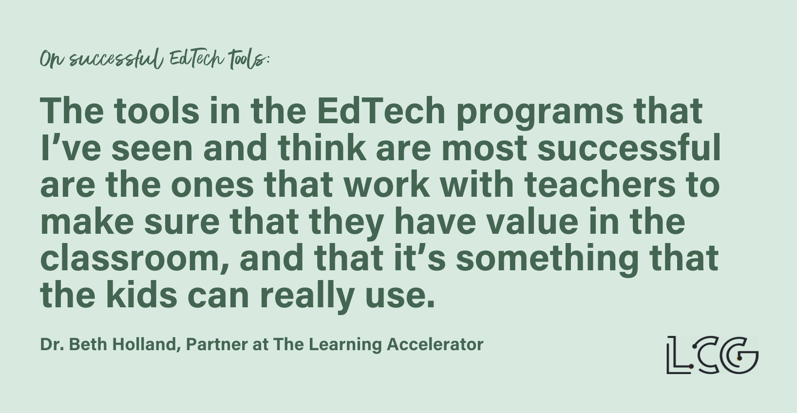 "The tools in the EdTech programs that I’ve seen and think are most successful are the ones that work with teachers to make sure that they have value in the classroom, and that it’s something that the kids can really use. And that they develop those really concrete teacher materials around how they could be most effective."