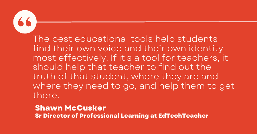 Shawn McCusker is an author and Senior Director of Professional Learning at EdTechTeacher he has 25 years of experience as a teacher and leader in public, private and alternative schools. Shawn is the author of Becoming Active Citizens, winner of the 2022 Foreword INDIES Gold Award for Education. His column “The Tech Savvy Classroom” appeared in Digital Learning magazine. As a teacher and expert in technology integration his lessons and student products have been featured in the Journal, Educational Leadership and the Huffington Post. In 2006, he was recognized as a finalist for the Golden Apple Award for Excellence in Teaching. In 2016 he was named a Top Trailblazing Educator on Twitter by eSchoolNews. He has been a keynote and featured speaker at conferences across the US.
